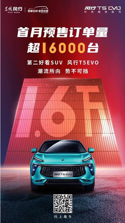 上月14日,东风风行官方宣布旗下全新SUV产品风行T5 EVO (配置|询价)正式开启预售,预售价格为10.49-13.79万元。今日,我们从官方获悉,风行T5 EVO预售首月订单已超过16000台。从预售开启至今短短一个月的时间里,风行T5 EVO就交出了16000台的喜人成绩,并还在持续快速增长当中,可谓是在2021年初就迎来了一个漂亮的开门红。