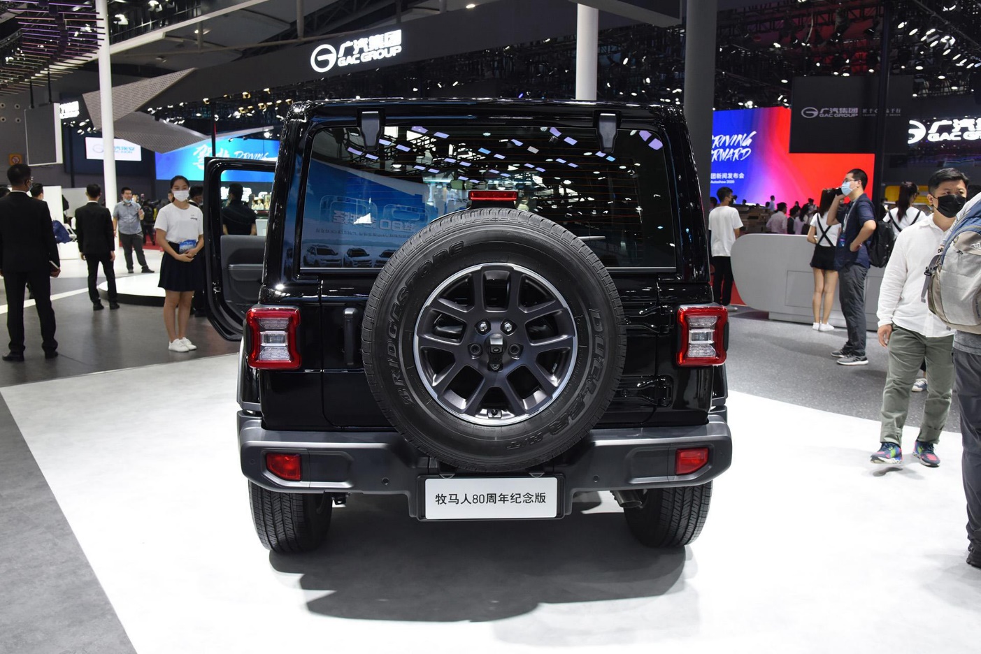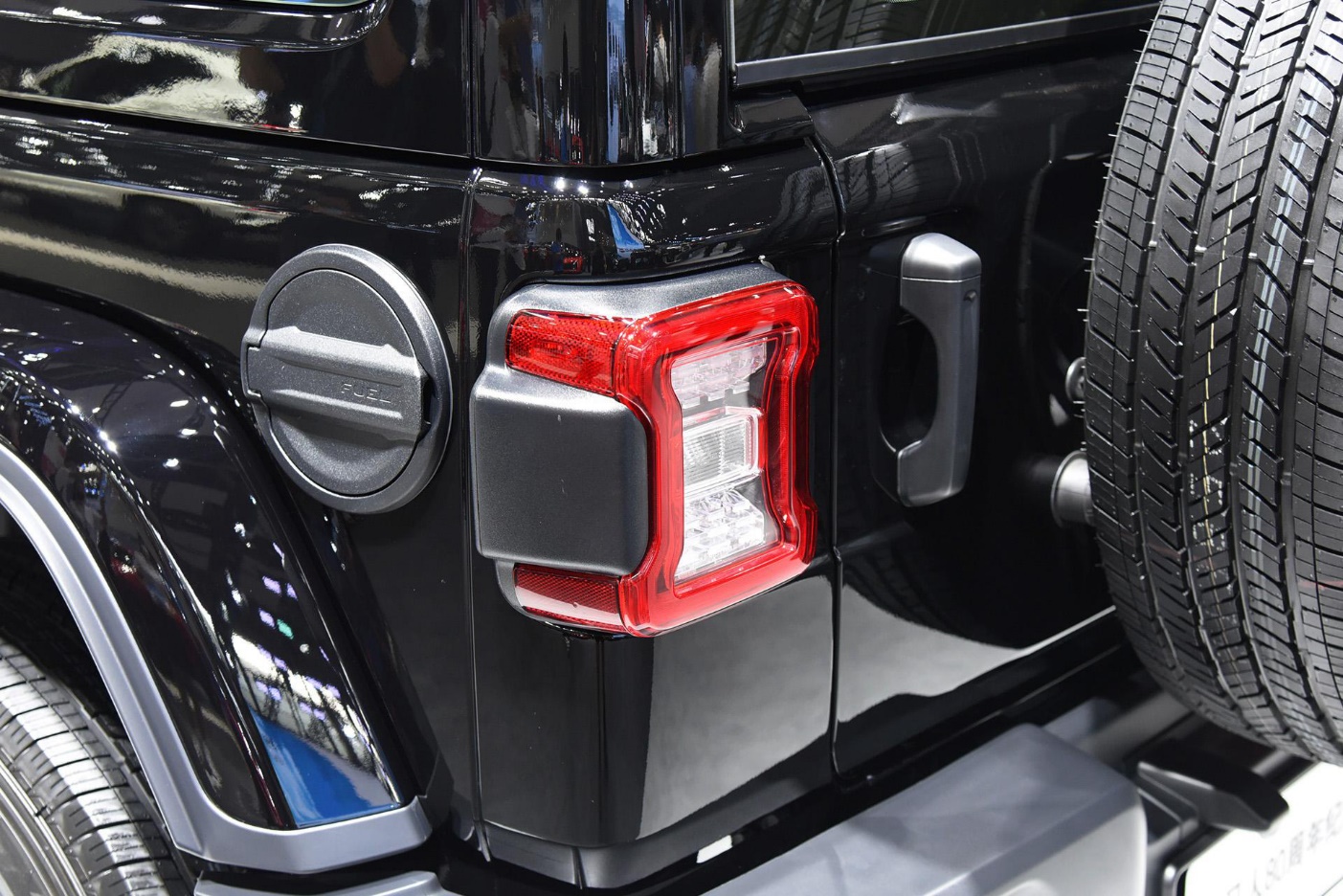 车尾依旧采用了方正造型设计,外挂式备胎以及纵向开门方式,硬朗的下包围及矩形尾灯也都是牧马人经典的家族化设计语言,给人一种硬派越野SUV的感受。