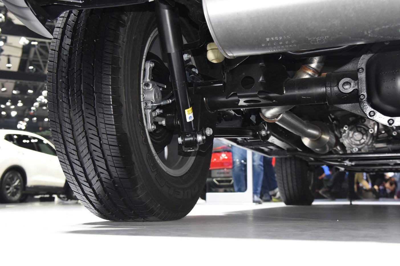 底盘悬架,采用前后均为多连杆整体桥式非独立悬挂的组合,并使用了非承载式车身结构。