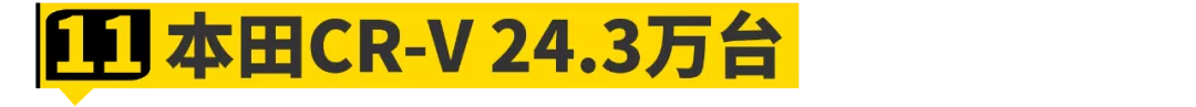 当然,CR-V能获得11名的好成绩,其实也少不了同行衬托。比如因为更换架构导致空间“缩水”的丰田RAV4,也间接帮助了CR-V走向成功之路。再加上CR-V改掉了上一代车型静谧性太差的问题,最终让它的全年销量达到了惊人的24.3万台。