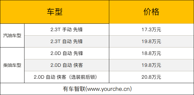 动力方面,其中BJ40刀锋英雄汽油版车型搭载经过优化的2.3T发动机,最大功率为170千瓦,峰值扭矩为345牛·米,传动系统匹配6速自动变速箱。而BJ40刀锋英雄柴油版车型搭载2.0T柴油发动机,最大功率120千瓦,峰值扭矩380牛·米,传动系统匹配采埃孚8速自动变速箱。BJ40刀锋英雄版搭载电控分时四驱系统,可以50:50的比例将动力平均分配到前后轴,使四个车轮都能平均获得从发动机输出的驱动力。并且,BJ40刀锋英雄版还标配了由前后电控差速锁和中央双速分动器组成的“三把锁”,其中双速分动箱不仅能够锁定前后轴的动力输出,还能将扭矩放大2.5倍,再加上前后桥的两把差速锁可将动力锁死在车轮上,提供持续稳定的驱动力。