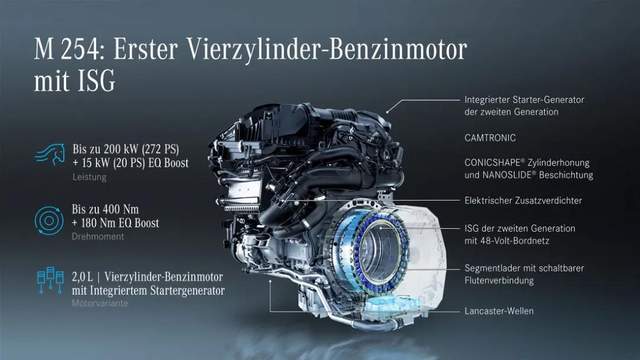 全新奔驰C级将换装最新的M254系列发动机,虽然入门版依旧为1.5T+48V轻混系统,但会将BSG电机升级为ISG电机,使得启停速度更快更平顺,并且在辅助加速、动能回收、电气化空调方面都有明显进步。