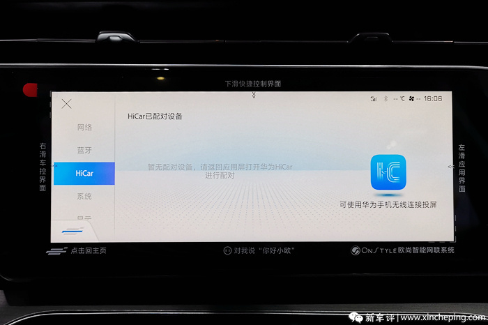 10.25英寸的中控大屏内置OnStyle智能网联系统,操作逻辑和UI设计无明显区别,快捷控制则增设休息、朋友、洗车模式,后者能一键关闭所有车窗和折叠后视镜。亮点当然还有华为HiCar的加入,经蓝牙配对进入后发现功能或界面皆与苹果CarPlay相仿,而现阶段内部支持的拓展应用程序偏少。