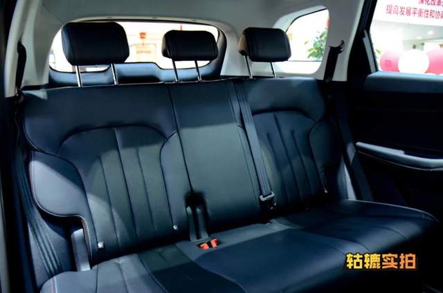 后排的乘坐空间和体验也是可圈可点。后排座椅宽大且舒适,地台也为全平设计,但位置有点稍高,上下车也许不太方便。以轱辘哥身高176cm为例,在前排调整好坐姿的情况下,坐在后排能得到一拳的头部空间和接近三拳的腿部空间,表现出色;大尺寸的全景天窗令整个后排的视野更加开阔,后排出风口、USB接口等也没有缺席,位于这个级别的上流水平。