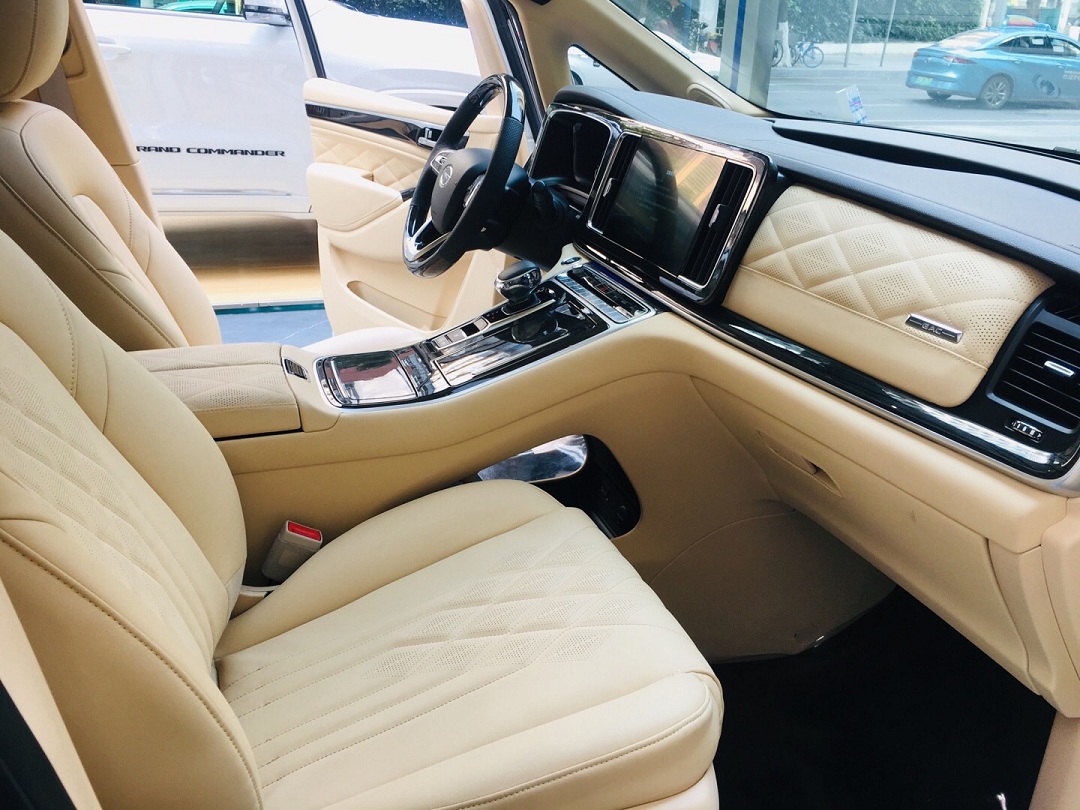 车内前排,新车采用三辐式多功能方向盘,并且在方向盘上下位置使用了木质材料。同时,新车内部采用米色为主色调,在仪表台和门板处也都进行了软包处理,并且加入了菱形缝线点缀,使车内看上去更显高档。