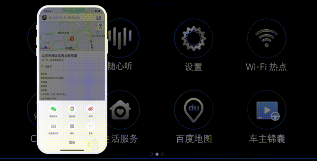 在车机互联方面,如果手机上收到一个地址,无需在车载导航中重新输入,可以直接分享到CUE,操作起来更加方便。