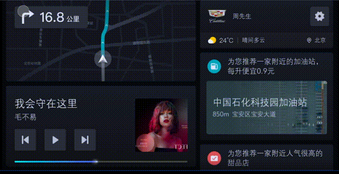 OTA更新后还可根据兴趣推荐感兴趣的内容,做车主的实时小助手。例如可以推荐热门电影并可一键购票,还可推荐人气餐厅、景点、洗车店等等。