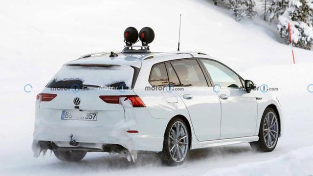 全新高尔夫R旅行版将在今年上半年亮相,它的冬季测试谍照也在网上曝光,大概可以看到新车长什么样。前脸长得和第八代高尔夫很像,车身侧面就是标准的旅行车形式,采用双五辐轮圈+蓝色制动卡钳,车尾配备了双边共四出排气。另外,新车可以选装R-Performance套件。动力搭载2.0T涡轮增压四缸发动机,最大功率320马力,最大扭矩420牛·米,相比老款车型提升30马力,匹配7速双离合变速箱和四驱系统。(图片来源于网络)