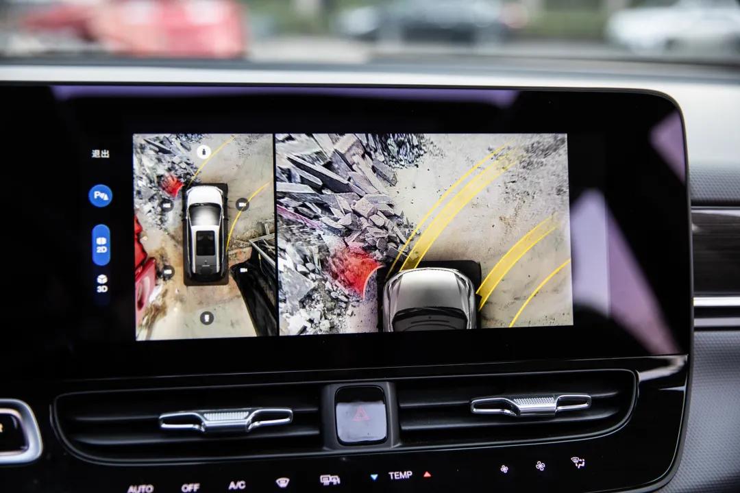 说完了好的我们来看点可以改进的。这台AION V配备了360°全景影像,但在调用逻辑上可以优化一下。全景影像只能在挂倒挡或者进二级功能页点击选用,如果能够增加前面或侧面感应障碍物距离较近会自动开启会更方便一些。