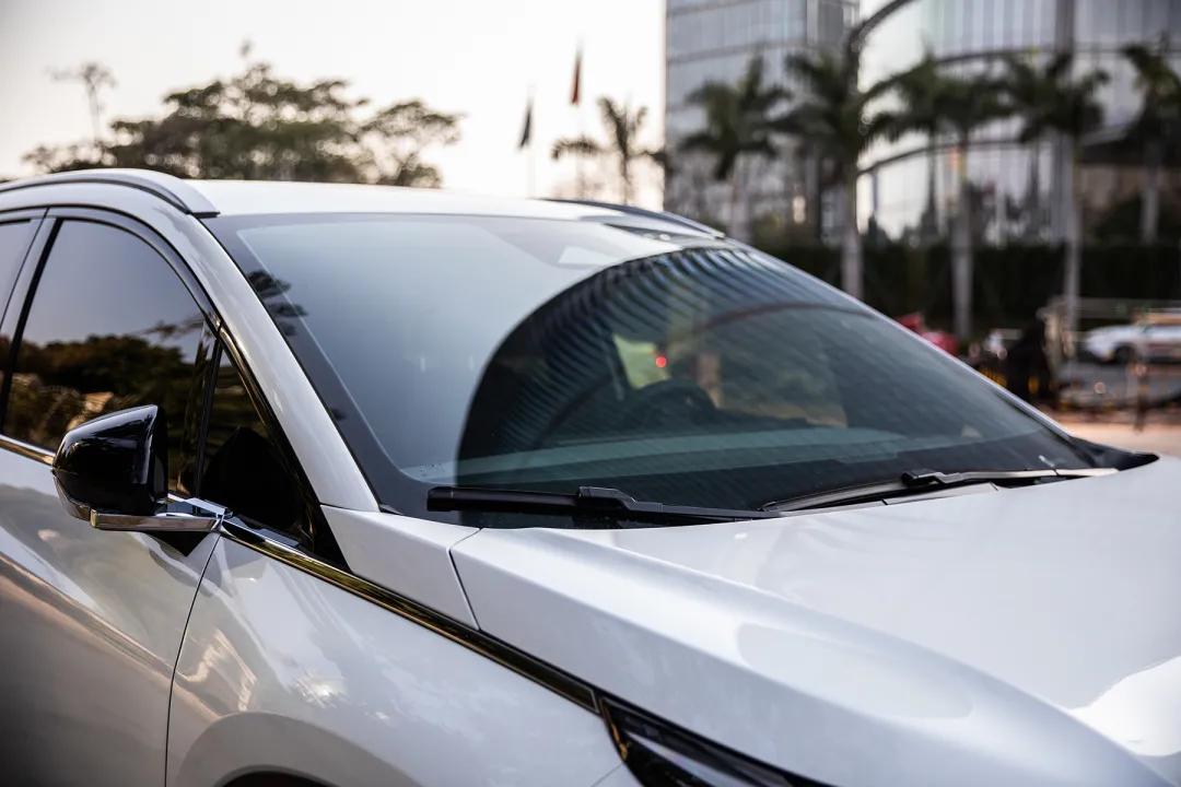 而如果从正侧面看的话,还会发现AION V采用了一个比较少有的设计,那就是A柱前移。AION V的A柱前端比起平时看到的大多数车型要更加靠前,A柱更加倾斜。