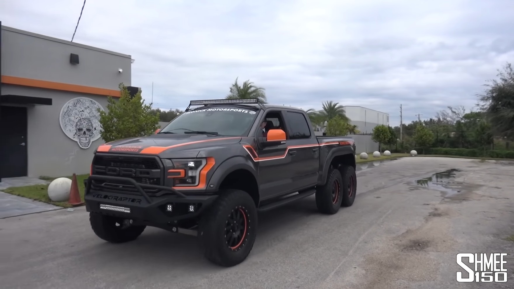轩尼诗的定制团队大幅增加了底盘的尺寸,以便为多出的车轴腾出空间。Shmee说,后视镜与他的头部持平,而床的大小足以容纳一辆经典MINI。"正如对任何来自德州的东西的预期一样,Velociraptor 6×6的一切都更大,"他指出。