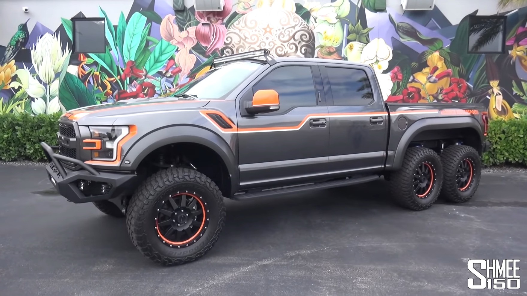 除了G63之外,他还发现与他的另一辆车相当,因为猛禽的动力系统与他的福特GT 超级跑车相似。正常情况下,将达到450匹的马力,但随着额外的车轮,这个掠夺性的车型也拥有额外的50匹马力的动力。因此,即使这东西的重量相当于几头野牛,它也能在5秒内达到60英里/小时的速度。