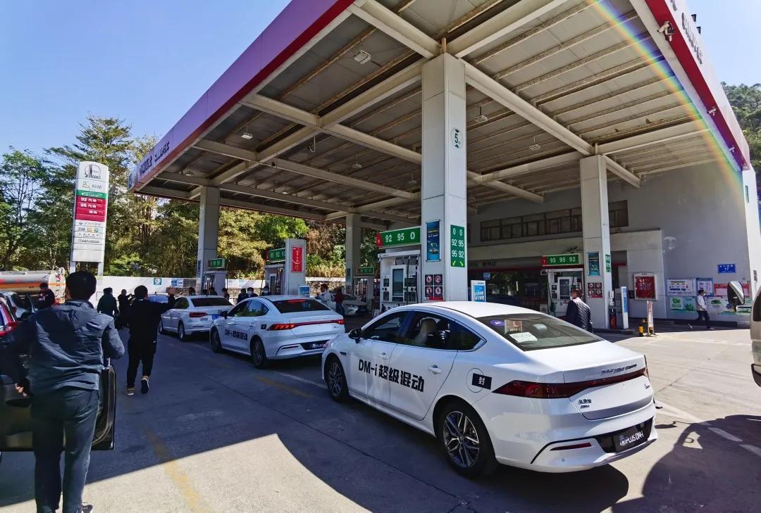 比亚迪也知道大家最关心的是这台车亏电状态下的油耗情况,所以给我们的时候都统一了车辆状态,全程HEV+ECO模式行驶,空调调至通风2格风,正常使用车内娱乐设施,电池状态均为25%(由于去加油站的路上下坡动能回收把电量充到了26%,在出发前还需要原地耗电把电量耗到25%后才能出发),此时纯电续航里程显示在22km,电池的SOC值设定为25%。和一般混动车型不一样,DM-i车型可以将电池的SOC值范围设定在25%到70%之间,本次设定在25%是为了让电池长期保持在亏电状态下来测试油耗。