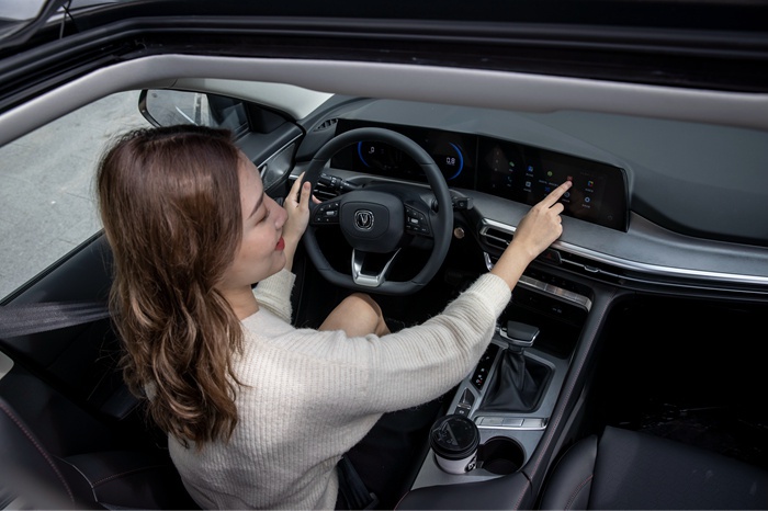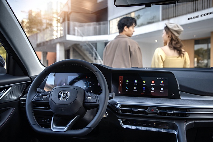 内饰仍然是最为人熟络的家族化布局,毕竟把品质和科技相交融是长安汽车历来的强项。新车甭管工艺细节抑或材质用料都经得起推敲,像银色哑光镀铬饰件、可四向调节的D形方向盘、红色缝线和靠背刺绣等,无不彰显出越级档次。