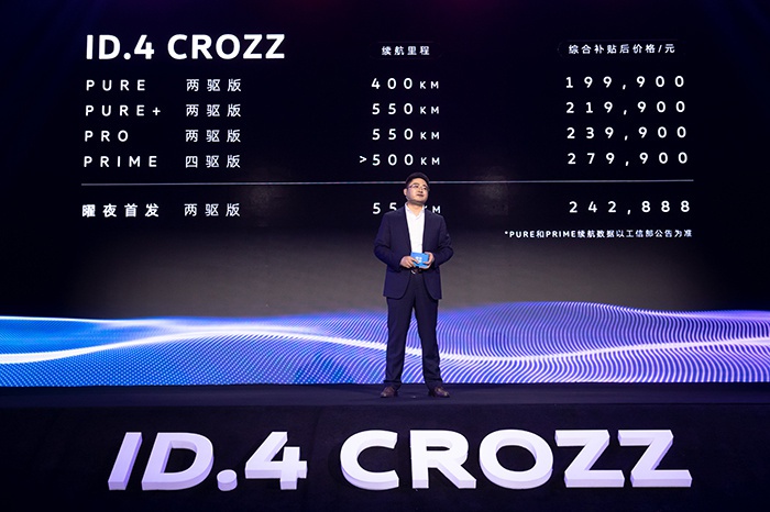 电动化的东风早已吹起,各大厂商也在积极发力,推出更多高质纯电动车型。近日,一汽大众旗下首款MEB平台车型ID.4 CROZZ (配置|询价)宣布正式开启预订;与此同时,ID.4 CROZZ还正式公布了售价信息。从公布的信息来看,一汽大众ID.4 CROZZ共推出了5款车型,补贴后售价区间为19.99-27.99万元。