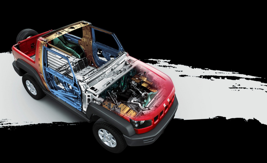 除了发动机的稳定性之外,车身刚性对于越野来说也同样重要。毋庸置疑,BJ40刀锋英雄版采用了非承载式车身,这可以说是硬派越野的“敲门砖”。值得一提的是,新车还加入了双B柱设计和由8根高碳素钢管构成的防滚架,高强度的车身除了提高越野时的稳定性,还能在车辆不小心发生了侧翻的情况下,最大程度的保护车内人员的安全。