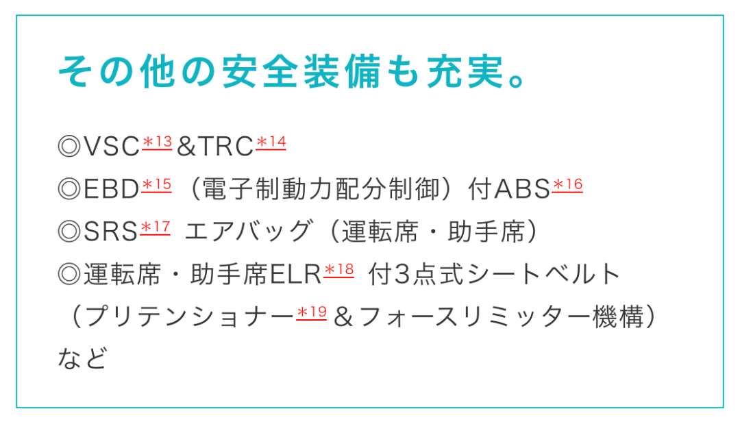 同时,这辆车还配备了大量的越级安全配置,比如前排双气囊,ABS,TCS,三点式安全带等等 - 即便是小型车也毫不妥协