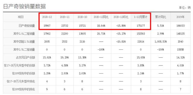 从销量上来看,东风日产奇骏在最近的12月份还能卖出19967辆车的数据表现,排名也是在SUV榜单的第12名,表现依旧亮眼。再看到其2020年整个的销量数据,奇骏也一共卖出了175177台,虽说不如东风本田CR-V的249983辆,但凭借着相对均衡的产品力和有竞争力的终端价格,奇骏还是得到了不少人的青睐。