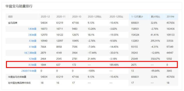 宝马品牌销量排名:倒数第一