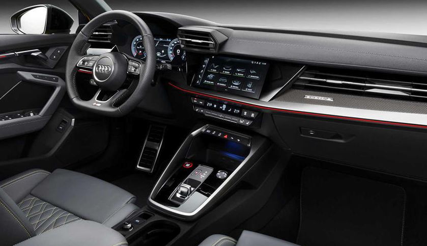 内饰依旧为家族式的设计语言,可以看出,新车采用拨杆式换挡机构、换挡拨片、运动座椅,展现出强大的运动身份,此外还配备了10.25英寸全液晶仪表盘和10.1英寸中控多媒体触摸屏,并且还可选装12.3英寸中控显示屏。