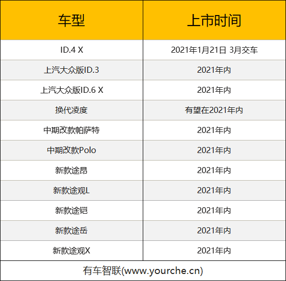 日前,我们从相关渠道获取到了上汽大众2021年的上市新车计划。据悉,上汽大众将在今年推出11款新车,其中包括三款纯电动车型。