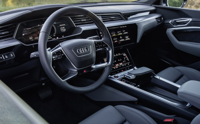 内饰方面同样延续了进口版e-tron的风格,全液晶仪表盘和双中控触控屏幕的设计令整个虚拟座舱的科技感满满,e-tron专属的内饰材质、缝线图案和色彩组合则流露出奥迪品牌独具韵味的豪华设计感。