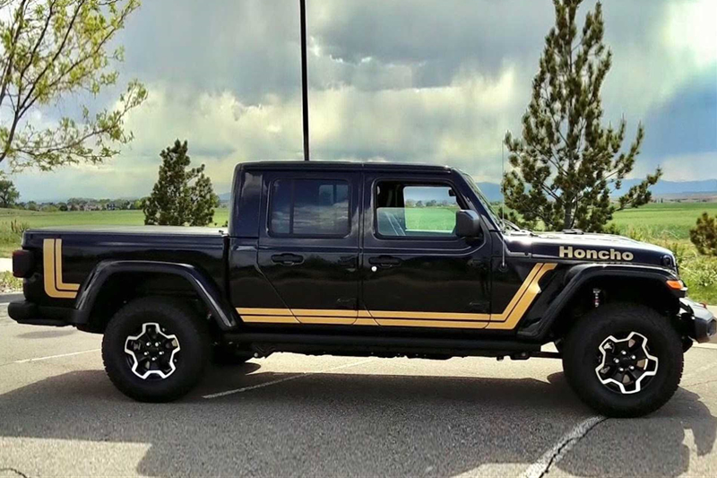 车身侧面,大尺寸泥胎和Trac-Lok后差速锁搭配17英寸轮圈,并将进行了黑色高光处理,霸气十足。此外,车身的整体设计变高,增强了该车辆的涉水深度,提高了越野通过性,成为一辆真正能够“撒野”的皮卡。