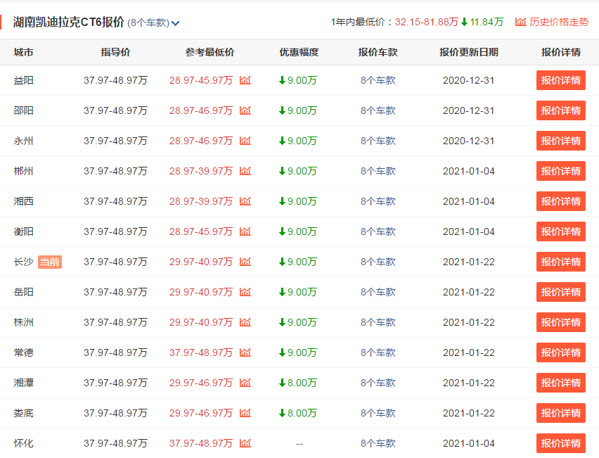 凯迪拉克目前在国内销售的车型并不是很多,并且,还非常容易区分,凯迪拉克XT4、XT5、XT6 (配置|询价)是旗下的SUV车型,分别为紧凑型SUV、中型SUV、中大型SUV,其中,凯迪拉克CT4、CT5 (配置|询价)定位中型轿车,接下来说的主角凯迪拉克CT6,定位为中大型轿车。在售价方面,凯迪拉克CT6官方指导售价:37.97-48.97万元,优惠幅度(湖南地区):9万元,相较于同级别豪华车型而言,凯迪拉克CT6可以说是极具性价比,毕竟,你花30多万可以买一台奔驰宝马奥迪旗下的B级豪华汽车,但是,你花同样的钱,你去买一台凯迪拉克CT6,就能买到一台豪华中大型轿车,难道不更“香”?