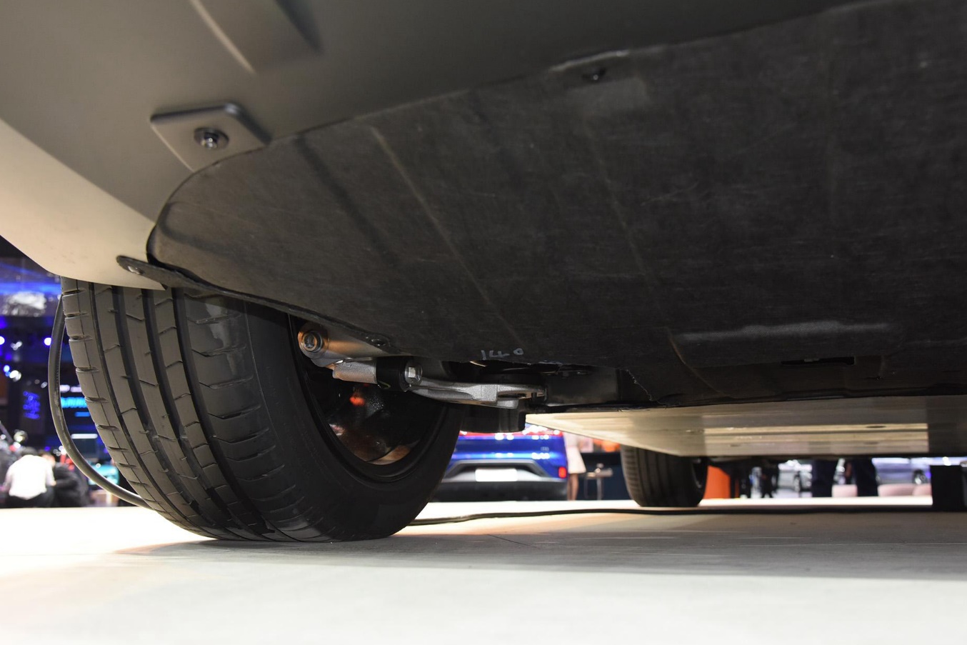 底盘悬架,采用前双叉臂式后多连杆式独立悬架的组合,并使用了轻量化铝合金材质底盘。