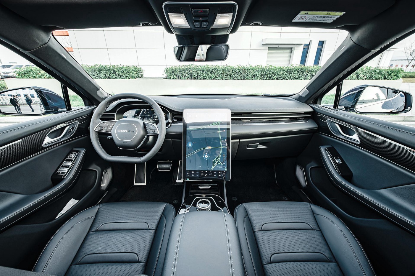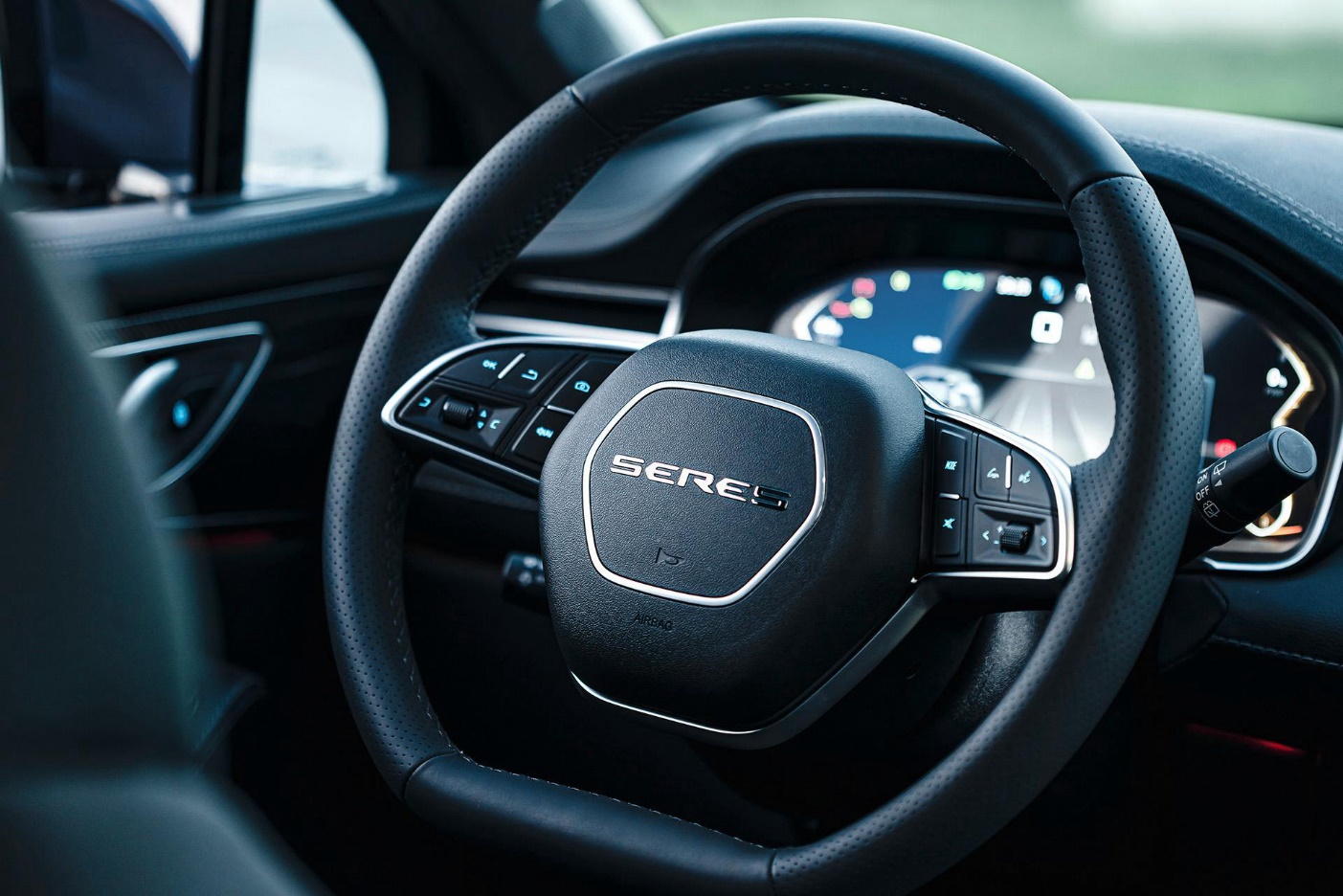 采用的旋钮式换挡机构,位置在主驾驶右手旁边,更加方便操作,车内也大量采用了搪塑工艺和PU等软性材料,还有一部分仿碳纤维的饰板。在辅助驾驶方面,搭载了SERES Pilot智能驾驶辅助系统。