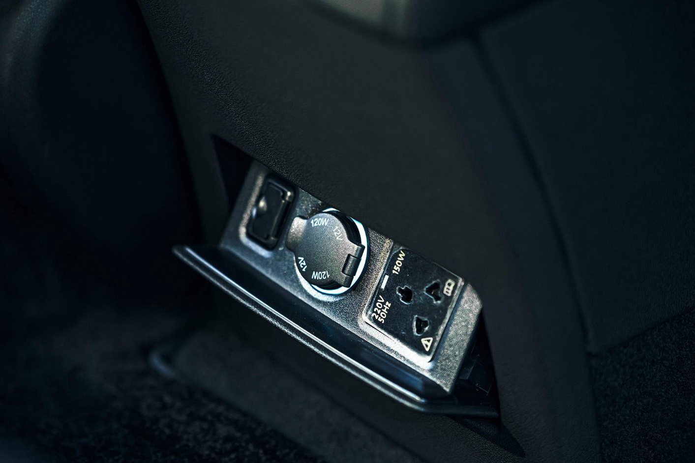 车内还设置了丰富的充电接口,前排配有一个无线充电面板、一个USB接口和12V电源接口。