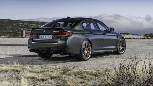 1月27日,宝马正式发布宝马M5 CS车型官图,相比宝马M5,新车采用轻量化设计,整车重量减轻了近70kg,整备质量1919kg。动力继续搭载4.4T双涡轮增压V8发动机,但是最大功率提升到635马力,比新款宝马M5多了35马力,3秒内破百,匹配8速手自一体变速箱和四驱系统。另外,新车造型上采用了哑光墨绿色车漆、香槟金格栅边框、锻造铝合金轮圈。内饰采用一系列M套件,包括M仪表、M真皮方向盘、M挡把、M Sport桶形运动座椅。