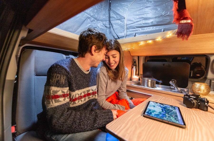 车内还贴心的安装了隔热玻璃、冰箱和一个可抬升的帐篷屋顶,为露营者提供了一个算得上是温馨且充裕的生活空间。