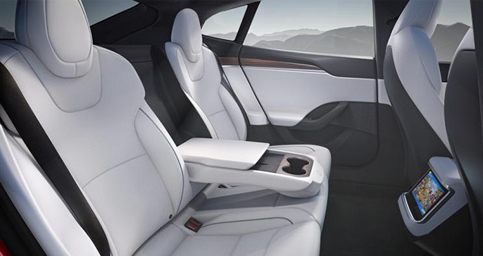 相比起外观上的细微调整,特斯拉Model S和Model X在内饰部分的变化算得上是天翻地覆。全新样式/UI的悬浮式中控屏、全液晶仪表以及前面板设计,再一次刷新了人们对于汽车内饰的认知。另一方面,支持无线充电的手机充电面板以及后出口风位置的全液晶显示屏(支持无线手柄拓展),都有效地增加了车厢内的娱乐拓展性。最让我们感到惊讶的是,特斯拉Model S和Model X换装了目前民用量产车型中绝无仅有的方向盘样式,视觉效果非常科幻。