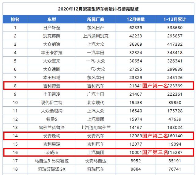 在吉利帝豪成为了全中国销量最好的国产品牌轿车,2020年一口气卖出了223369辆新车。