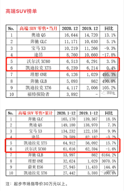 凯迪拉克XT5和沃尔沃XC60同为二线豪华品牌,同时又都是旗下的中型SUV,在市场上形成了“针尖对麦芒”竞争态势。通过乘联会的公布销量来看两款车型均达到了前几名的水平。