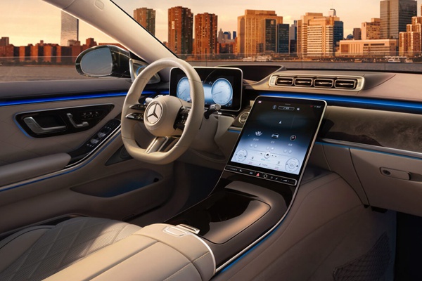 全新S级在安全部分迎来了重大升级,如:主动式盲点辅助系统可与智能感应助理联动、带自行车横向探测的主动式制动辅助、77英寸AR平视显示、PRE-SAFR预防性安全系统(调直座椅、收紧安全带、关闭车窗、听力保护措施等)。此外,下半年L3级自动驾驶功能将在全球部分市场投入使用。