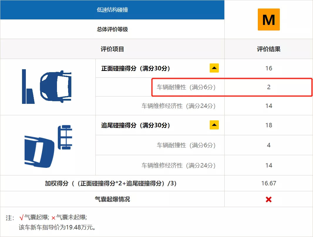 从中保研给出的总评分可以看出,RAV4的整体评价还是不错的,低速维修经济性获得了M(一般),其它项目则均为G(优秀)。接下来,我们就针对RAV4的几个重点项目进行详细的分析解读,看看丰田的热门SUV安全性到底如何。