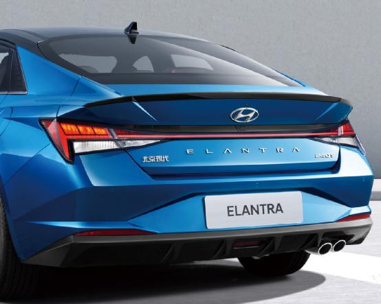 而更具亮点的设计在于车尾部分。第七代伊兰特的尾部造型极为凌厉,立体感十足,配合上微微翘起的小尾翼,运动属性油然而生。而同级独有的H型贯穿式尾灯可谓是效果出众,点亮后的那一刻,不仅有警示后车的作用,还提供了极高的辨识度与车尾层次感。