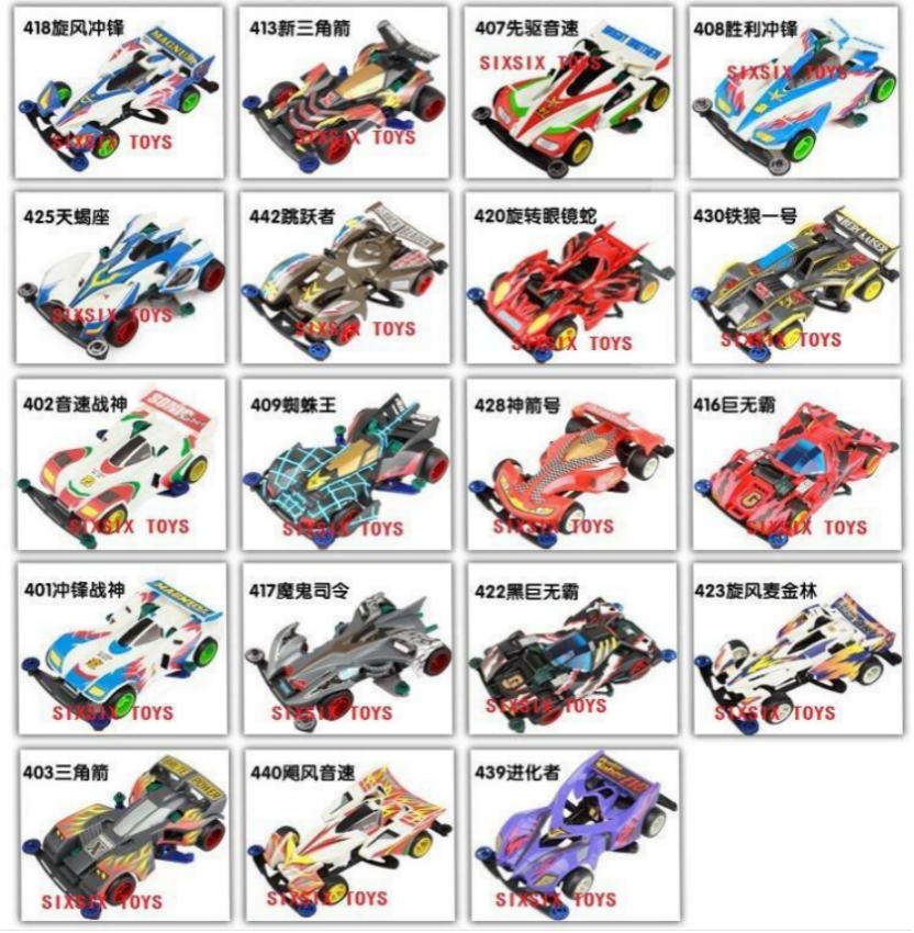 如果你想证明是否看过《四驱兄弟》,那大概应该对弟弟的历代冲锋号和哥哥历代的音速号,三角箭等等不会陌生。