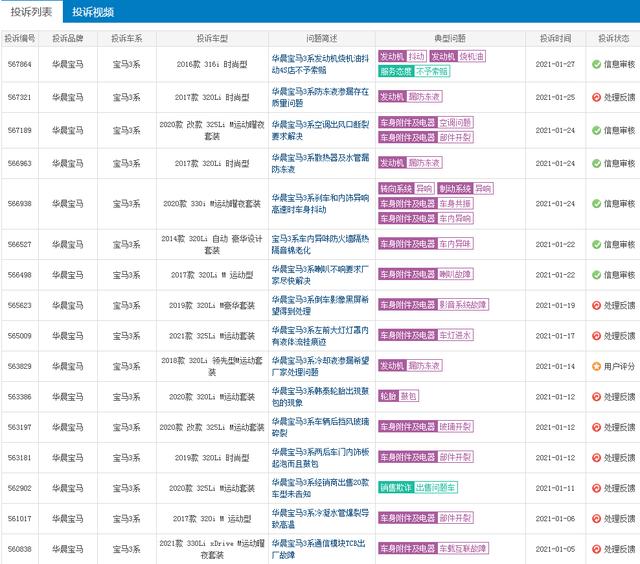 在2020年的销量当中,宝马3系基本稳定在月销量1万多台左右,对于这样的销量表现,纵观整个国内B级车市场,很多有车型能够卖得这么好,由此可见,我们国人对于它的喜爱程度。与此同时,它也遭到了众多车主的投诉,在一月份的部分投诉当中,我们可以看出,车身附件及电器故障问题,成为了不少车主心中的痛,不管是之前的老款车型,还是目前在售的2021款宝马3系,都有此类问题的产生。所以,我们朋友们在选择的时候,还是需要多试驾以及全面的了解清楚,不要盲目进行选择。