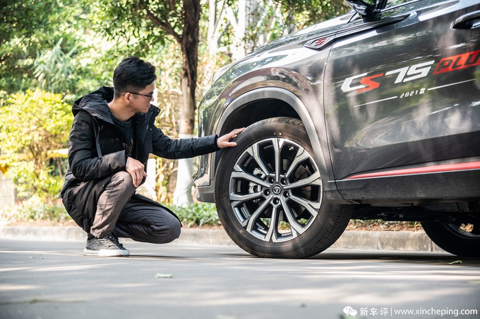 除了上面提到的这些,这台CS75 PLUS还有许多很对我胃口的设计,比如这个19英寸的轮毂,当初去4S店看车的时候展车的尺寸和样式不一样,虽然一样好看,但这个吸引力要更大一些。还有双边双出排气、后视镜下方这个S运动标识、黑色格栅上的S标识,都是我喜欢的设计。这些小细节让这台CS75 PLUS的运动感更加突出。顺带说一句,这台车的车漆颜色我很喜欢,但买车的时候估计会选白色而不是这个,毕竟夫人的意见也很重要。