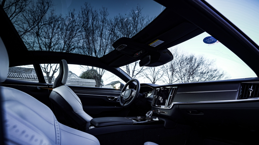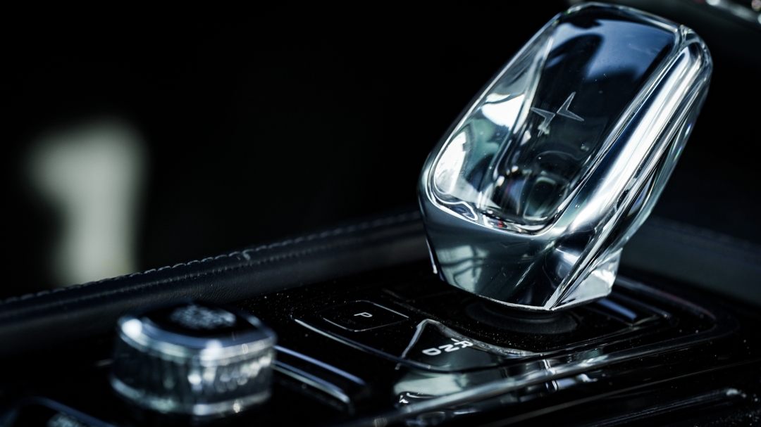 仪式感极强的无框车门,跑车般进入车内的姿势,请记住这两点。坐到车内,除了方向盘以及挡把上的极星LOGO,你确定这不是一辆沃尔沃?如果说碳纤维饰板是唯一的关注点,但与整体的“性冷淡”风格放在一起,真的还是太平淡。没有任何的激情可言,打开B&W的音响,放上一首钢琴曲,仿佛更像是它的打开方式。