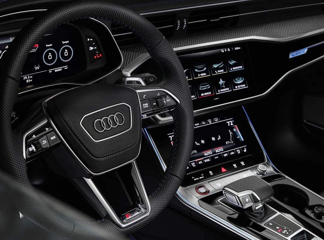 内饰方面,豪华设计感不言而喻,12.3英寸全液晶仪表搭配平底式方向盘与悬浮式中控屏的组合给内饰渲染出极强的运动感与奢华感。同时,这台车还配备了柏林之声音响,起到了锦上添花的作用。
