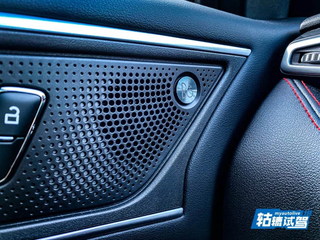 锐界PLUS配备了丹麦B&O豪华音响系统,可以看到在中控屏前方以及前门两侧,均装备了贴有B&O标识的音响,音效还可以通过中控屏进行设置。