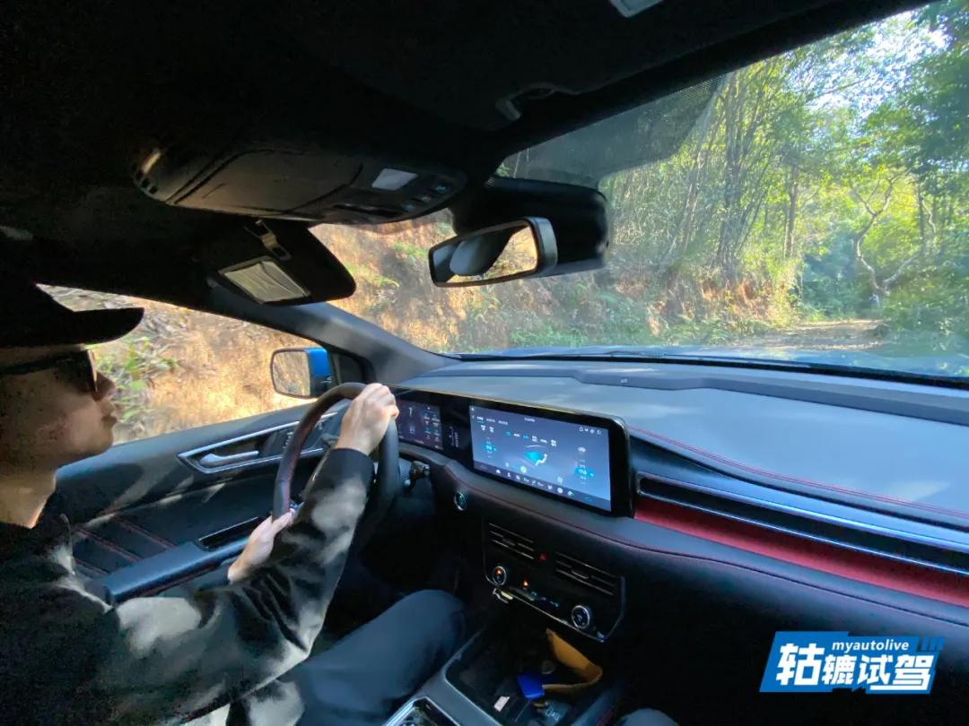 值得一提的是,轱辘哥还试乘了一段越野路段,坡度较大、充满乱石沟壑,但在S档手动模式下,配合适时四驱系统,也是可以顺利地通过大多数恶劣路况。