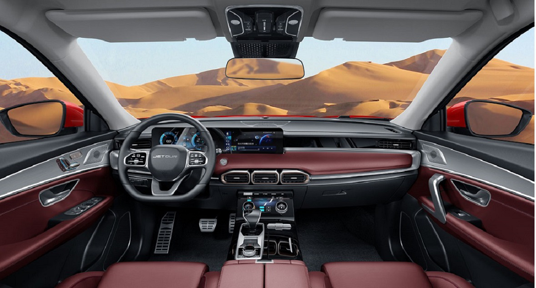 捷途X70 PLUS天版车型内饰部分采用了最新的设计风格。同时,新车的中控大屏采用连屏设计与全液晶仪表盘形成一体化,科技感十足。此外,该车方向盘底部进行了扁平化设计,运动气息极为浓郁。