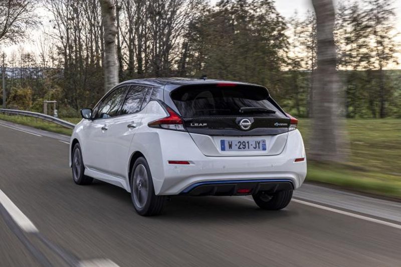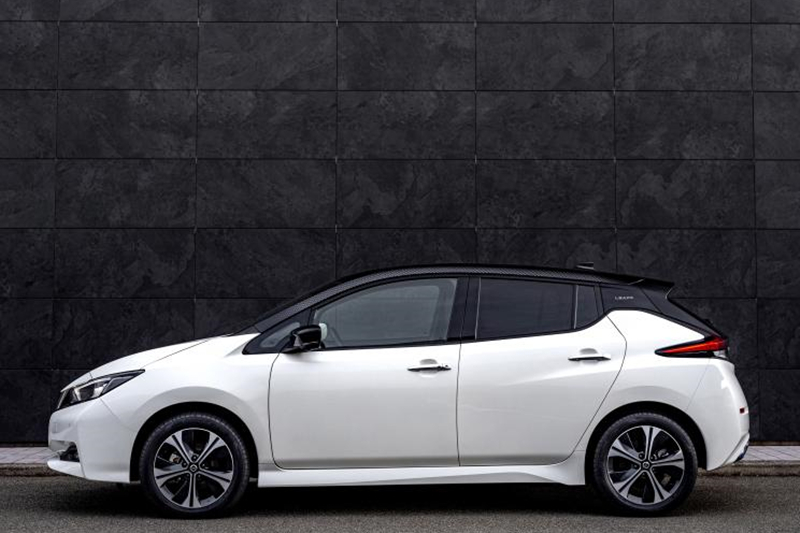 车身侧面,新车采用了双色车身设计,营造出悬浮式车顶的效果,非常时尚。C柱上独特的Leaf10的标致搭配多辐式铝合金轮圈,辨识度很高。此外,10周年纪念版车型提供了盲点干预功能,以及智能的后视镜,科技感十足。