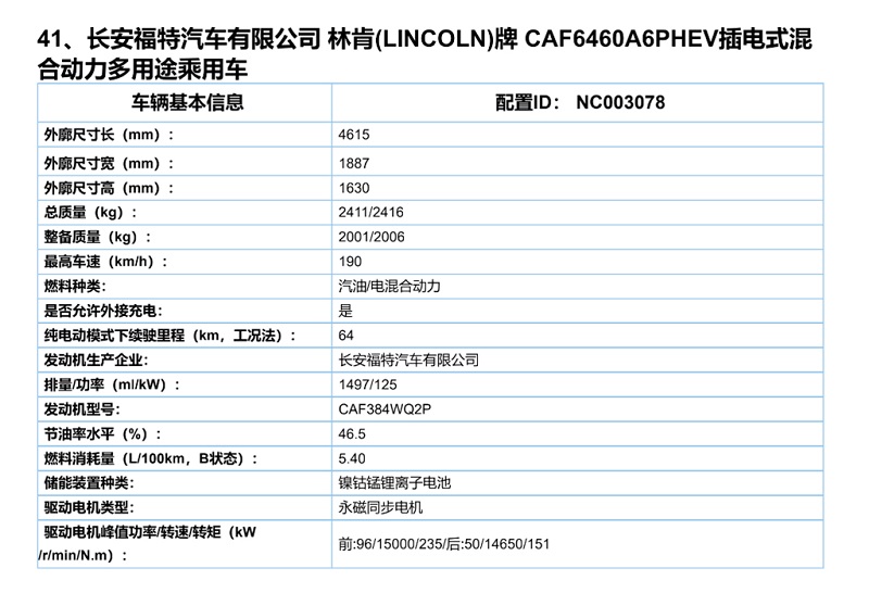日前,我们从工信部2021年第1批《新能源汽车推广应用推荐车型目录》获悉,林肯冒险家PHEV将搭载由1.5T发动机和前后双电机组成的插电式混合动力系统,据悉新车在NEDC标准下续航里程为64公里。