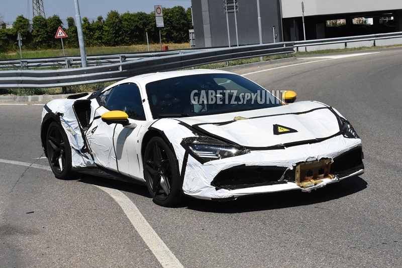 外观方面,从此次曝光的谍照来看,路试车除了套用法拉利488 GTB的车壳,还覆盖了厚重的车身伪装,但是部分造型细节还是能够看出一些端倪。其中,前脸方面,新车采用了全新的前大灯造型,类似于法拉利SF90,并且内部采用LED光源,视觉上十分锐利,为整车增添了一丝凶狠气息。此外,新车还在车头中央粘贴了黄色高压电贴纸,这也进一步证明了新车的插混车型身份。